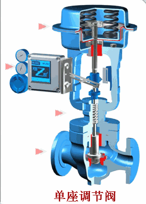 其中,执行机构是调节阀的推动装置,它按信号压力的大小产生相应的推力,使推杆产生相应的位移,从而带动调节阀的阀芯动作;阀体部件是调节阀的调节部份,它直接与介质 接触,通过执行机构推杆的位移,改变调节阀的节流面积,达到调节的目的。