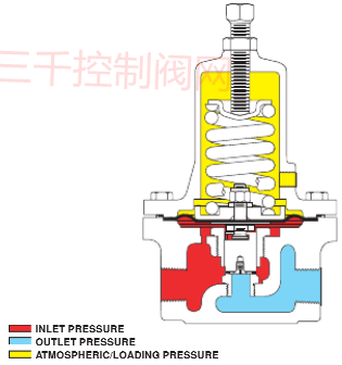 阀前压力调节是调节阀前压力,又称泄压阀,取压点在阀前,阀后压力调节取压点在阀后,又称减压阀。压差自力式阀门,用于控制与其串联的某一设备或某一回路的进出口压差恒定。当被控对象的压差大于设定值时,阀门关小,当被控对象的压差小于设定值时,阀门开大。阀门本身的压降随外网的资用压头的变化而变化,以保证被控对象的压差恒定。