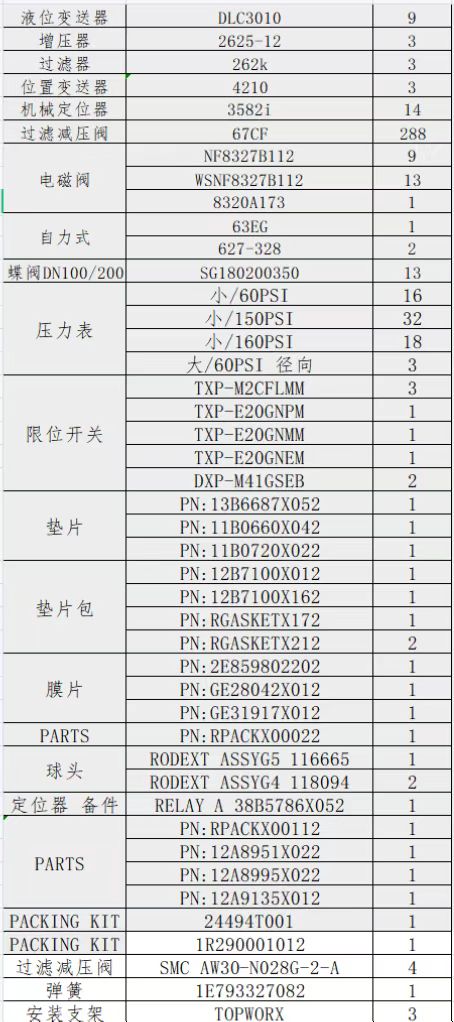 ● 20250708更新:国产限位开关,保位阀,过滤减压阀,阀位变送器,300台。