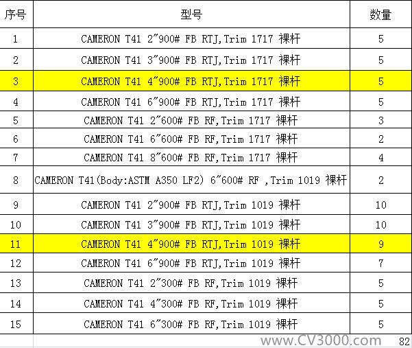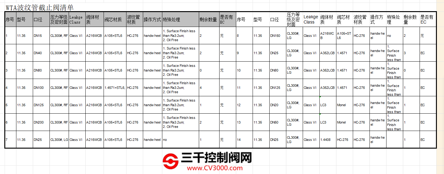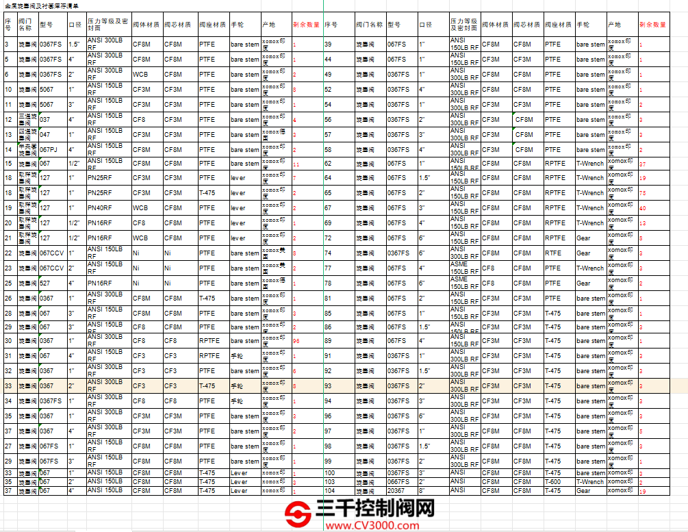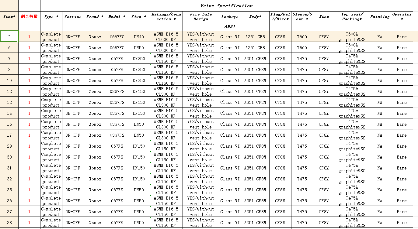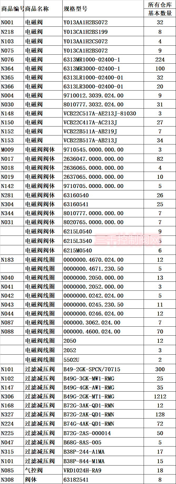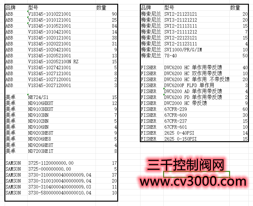 ● 某库存上FISHER,ASCO,WESTLOCK附件备件一栏。