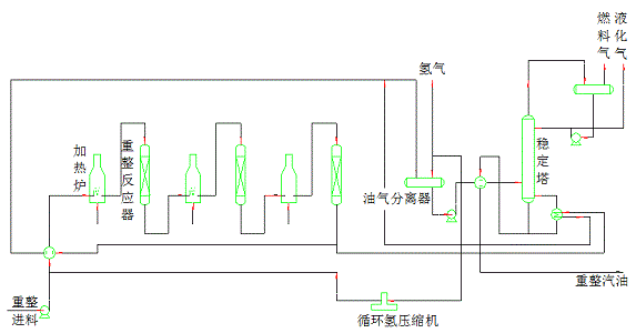 半再生式催化重整典型工艺流程示意图