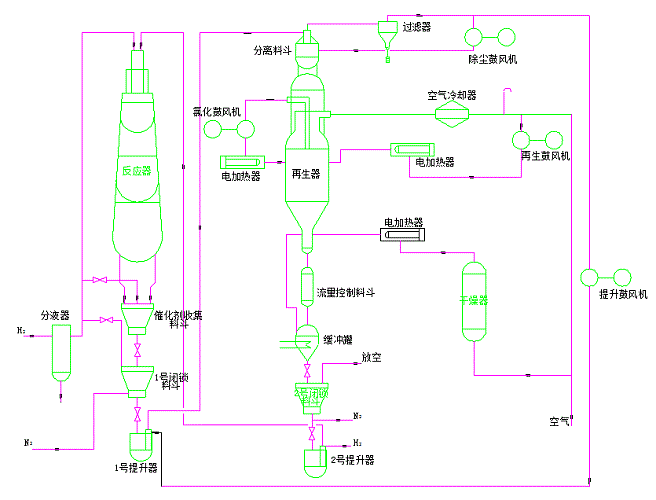 UOP连续重整催化剂再生流程示意图