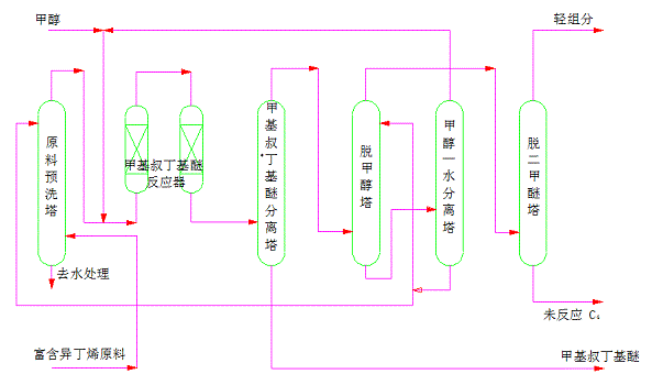 常规法合成MTBE流程示意图