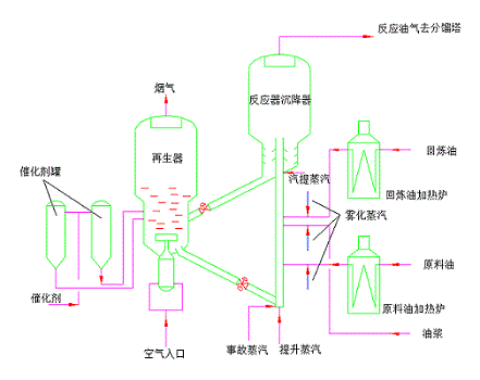 反应压力——提高反应压力,增加了反应时间,从而可提高转化率,但压力过高,会导致焦炭产率增加,汽油和烯烃产率下降。对于反应压力要结合原料的生焦趋势和烟气能量回收的经济效益综合考虑,有烟气能量回收设施的反应压力一般为0.25~0.3MPa,无烟气能量回收的则为0.09~0.27MPa。