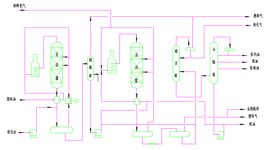 根据目的产品不同又可分为中馏分油(喷气燃料、柴油)型和轻油型(重石脑油)。