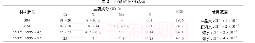 海水中氯离子含量为200-1000ppm,故在选型时要选择耐腐蚀性较高的材质。