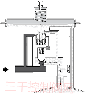 2)间接作用式调节阀 增加一个指挥器(先导阀)它起到对反馈信号的放大作用然后通过执行 机构,驱动主阀阀瓣运动达到改变阀开度的目的